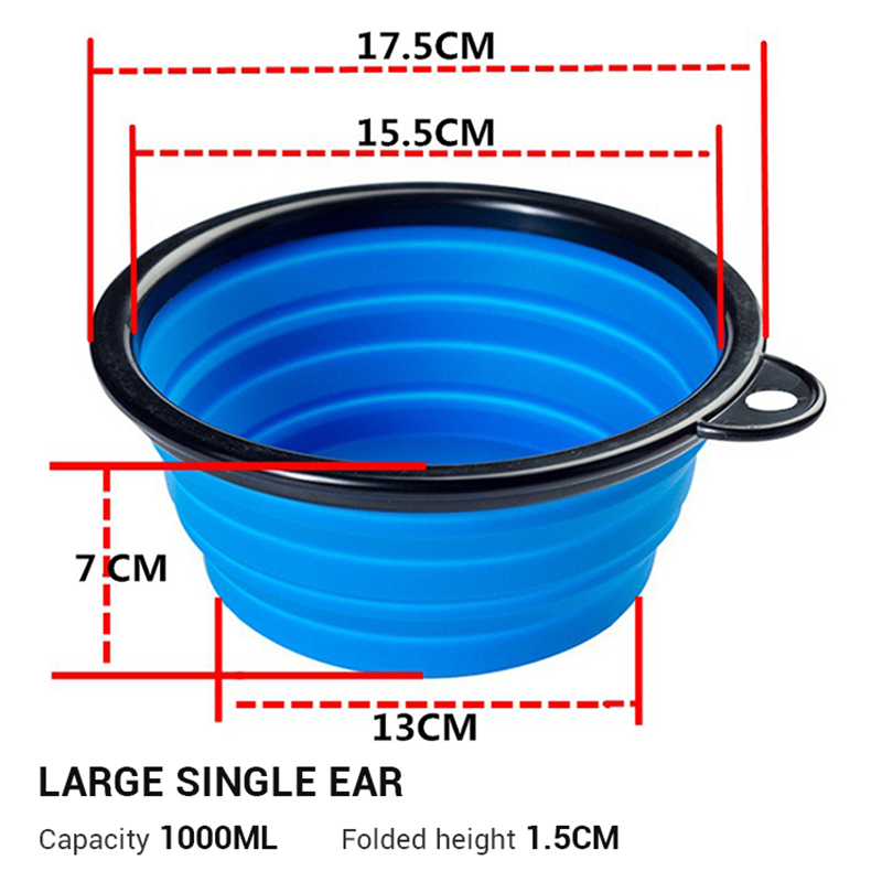 (Single ear) Capacity: 1000ML, weight: 123g, bowl mouth diameter: 17.5cm, bottom diameter: 13cm, height: 7cm, folded height: about 1.5cm