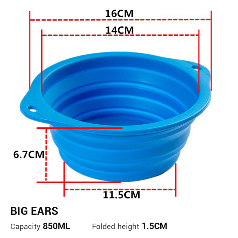 (Single ear) Capacity: 650ML, weight: 82g, bowl mouth diameter: 16cm, bottom diameter: 11cm, height: 6cm, folded height: about 1.5cm
